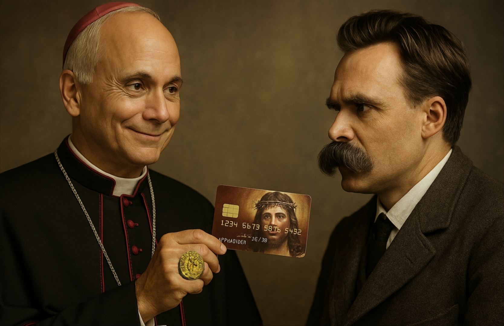 Del Nazareno que echaba a los mercaderes del templo al Cristo convertido en logotipo global: Nietzsche enfrenta al ficticio Papa León XIV en una conversación sobre poder, fe y facturación. Una crítica que no se detiene en el Vaticano y alcanza a todas las iglesias y sectas que juran seguir a Cristo… con recibo, QR y diezmo oficial.